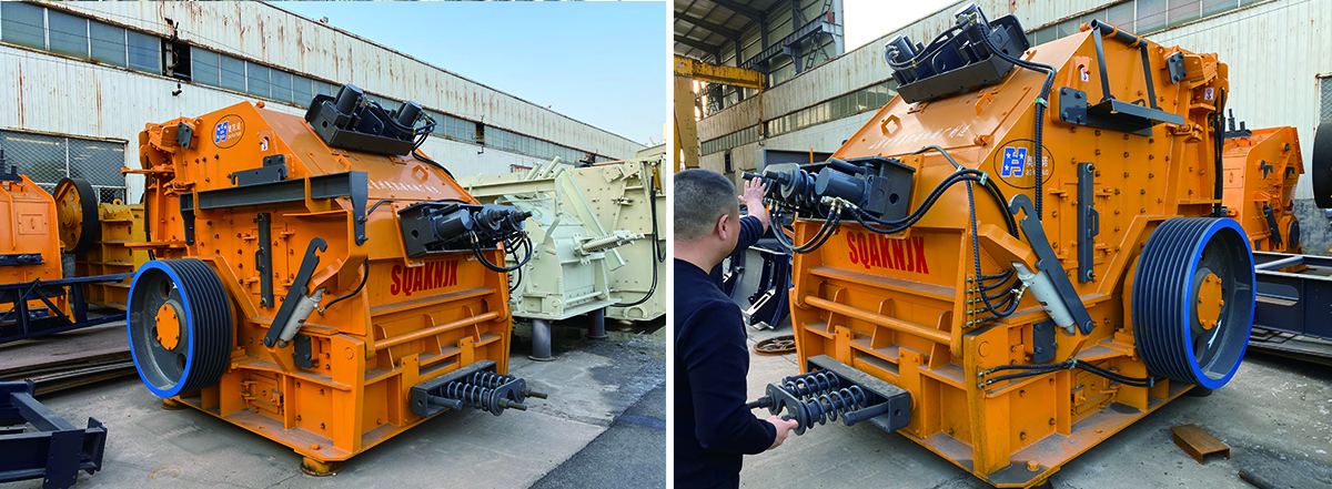 反擊式破碎機(jī)是采用沖擊能破碎的機(jī)械設(shè)備,屬于高能強(qiáng)的破碎設(shè)備,其工作原理是利用高速旋轉(zhuǎn)的轉(zhuǎn)子上的板錘,對(duì)進(jìn)入破碎腔內(nèi)的物料進(jìn)行高速?zèng)_擊而破碎,且使已破碎的物料沿著轉(zhuǎn)子切線方向高速拋向破碎腔另一端的反擊板,使物料再次破碎,然后由反擊板反彈到板錘,繼續(xù)重復(fù)上述過程。